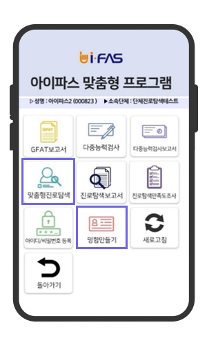 맞춤형 진로탐색 클릭