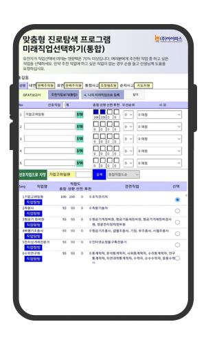 자신의 강점과 약점을 정확히 분석하여 가능성 높은 직업을 파악하는 맞춤형 클리닉 프로그램